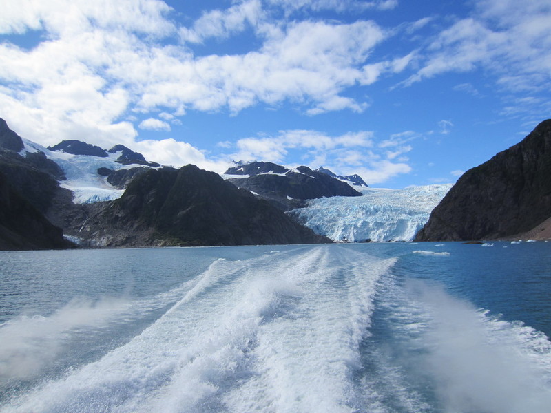 Seward, die einzige Hafenstadt an der Südküste der Kenai-Halbinsel, verdankt ihren Namen William Seward, dem amerikanischen Außenminister, der Alaska 1867 von den Russen gekauft hatte. Heutzutage wird in Seward vor allem Kohle für Korea verladen. Ich buche für uns eine sechsstündige Whalewatchingtour und habe dabei die Wochentage aus den Augen verloren. Für morgen sind Wolken und Regen angesagt, erst übermorgen soll die Sonne scheinen. Mir Glückskind scheint sie aber bereits beim Beobachten der Wale, Orcas, Puffins (kleine bunte Wasservögel), Otter und beim Bestaunen der Gletscher, die bis in den Pazifik reichen.