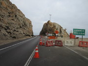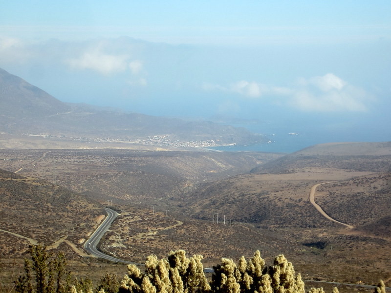 Schon fünf Minuten nach dem Start gibt es einen Baustellenstopp. Dort kommt ein in Sandiago lebender deutschsprachiger Mann auf mich zu und wir unterhalten uns fünf Minuten bis die Zufahrt durch die Baustelle geöffnet wird. Die nächste Stunde fahren wir die einzige Hauptstraße Nummer 5 (Panamericana), die tausende von Kilometern vom Norden in den Süden Chiles führt gemeinsam hintereinander her. Hinter einer Mautstelle, an der hier auch Motorräder bezahlen müssen, stoppt mich und das Auto eine Polizeistreife. Sie wollen meinen Führerschein sehen und mehr nicht. Dennoch scheint die Sache nicht so ganz einfach zu sein, weil in meinem internationalen Führerschein der Stempel bei „D“ (Kraftfahrzeuge zur Personenbeförderung mit mehr als 8 Sitzplätzen außer dem Führersitz) fehlt. Ich habe damit kein Problem, schließlich fahre ich ja ein Motorrad, aber ich glaube die lassen mich nur weiterfahren, weil der nette Herr vom Baustellenstopp aus seinem Auto aussteigt und zu erkennen gibt, dass er auch deutsch spricht, damit ich hier nicht alleine stehe.