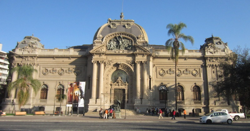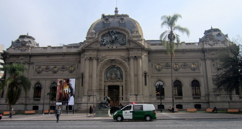 Mit Julia aus Brazilien verabrede ich mich zum kostenlosen Stadtrundgang und treffe dort auf einen weiteren Brasilianer und zwei Deutsche. Der Stadtrundgang startet am Plaza de Armas auf dem gerade die Polizeinachtwache abgelöst wird und gegenüber Evangelisten predigen. Nebenbei erfahre ich, dass man in Chile lieber Tee und keinen Kaffee trinkt. Und es die alten Kaffestuben schwer hatten und sie deshalb auf „Kaffeestuben mit Beinen“ erweitert wurden: Spärlich bekleidete junge Damen sollen vom nicht so guten Kaffee ablenken und manchmal ruft der Eigner eine besondere Minute aus, in der die Türen verschlossen werden und die Hüllen ganz fallen. Unsere Stadtführer hat dies in 10 Jahren genau dreimal erlebt und es lohne sich nicht wirklich dafür kostbare Urlaubszeit zu investieren, also laufen wir weiter zum Präsidentenpalast und lauschen der Geschichte Chiles mit all ihren schwierigen Umbruchszeiten von sozialistischen zu diktatorischen Regierungen bis hin zur heutigen Demokratie. Gehen weiter vorbei an Gebäuden die durch das starke Erdbeben im Jahr 2010 beschädigt wurden, am Opernhaus, Berliner backenden Bäckereien, vielen gebraucht Bücher Verkaufsständen, da neue Bücher in Chile mit 18 % Steuern belegt und damit sehr teuer sind, einem von Deutschland geschenktem Monument, durch den herbstlichen Park und über Fluß zum Bellavista Viertel mit seinen vielfältigen Restaurants und enden am Pablo Neruda Haus in Santiago de Chile.