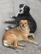 Und dann gibt es hier neben den üblichen Straßenhunden, von denen der ein oder andere vielleicht zu tief ins nebenstehende Glas geschaut hat, auch Diensthunde, die immer in dieselbe Richtung schauen wie der Dienstherr ;-)