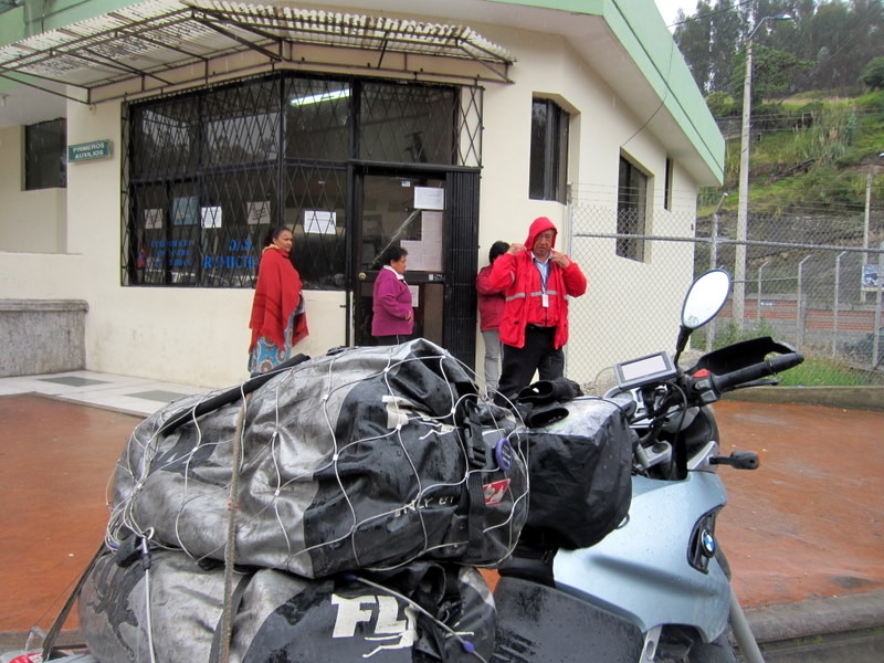 Den Wecker habe ich mir auf 6:30 Uhr, also kurz nach Sonnenaufgang gestellt, um heute bis nach Quito zu kommen. Es regnet und hört die knapp zwei Stunden bis zur Grenze nicht mehr auf. Auf letztlich 3.300 Metern ist es während der Fahrt bitter kalt. Meine Griffheizung ist an, aber ich kann sie nicht fühlen. Bin froh, dass an der Grenze von Ecuador das Computersystem ausgefallen ist und ich mich erstmal aufwärmen kann. Vollig entspannt geht hier alles von statten. Hätte ich nicht nachgefragt, hätte ich auch illegal einreisen können. Kein Grenzer, der nach meinem Pass oder der Importbescheinigung für mein Motorrad nachgefragt hat.