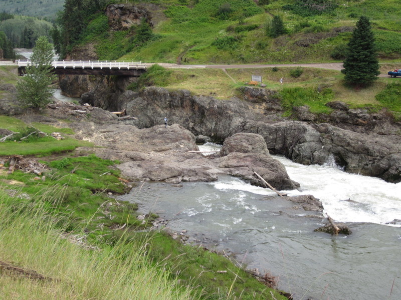 Während die Straßen bisher völlig problemlos zu befahren waren, warnt mich kurz vor dem Alaska Highway eine Bikerin vor der kommenden dreckigen Straße. Dreckige Straße, welche Straße ist schon sauber, denke ich und stelle dann fest, dass dreckig richtig schlimm dreckig ist. Der Highway 37 wurde erweitert und der Regen allein spülte die darauf liegende Bauerde nicht weg. Und es sollte noch besser kommen. Vor mir eine Nebelwand. Erst denke ich, es kann sich nur um Wolken handeln. Obwohl die Sonne scheint? Also eine große Staubwolke. Vor uns muss wohl ein Auto fahren. Ich sehe aber keins und ich kann hier sehr weit blicken. Der Staub wird vom Wind, der mich manchmal fast von der Straße stößt, hochgewirbelt und bleibt in der Luft hängen. 53 Kilometer lang! Danke nein, ich bin froh als das endlich geschafft ist. Ein Grund stehen zu bleiben und ein Foto als Erinnerung mitzunehmen.