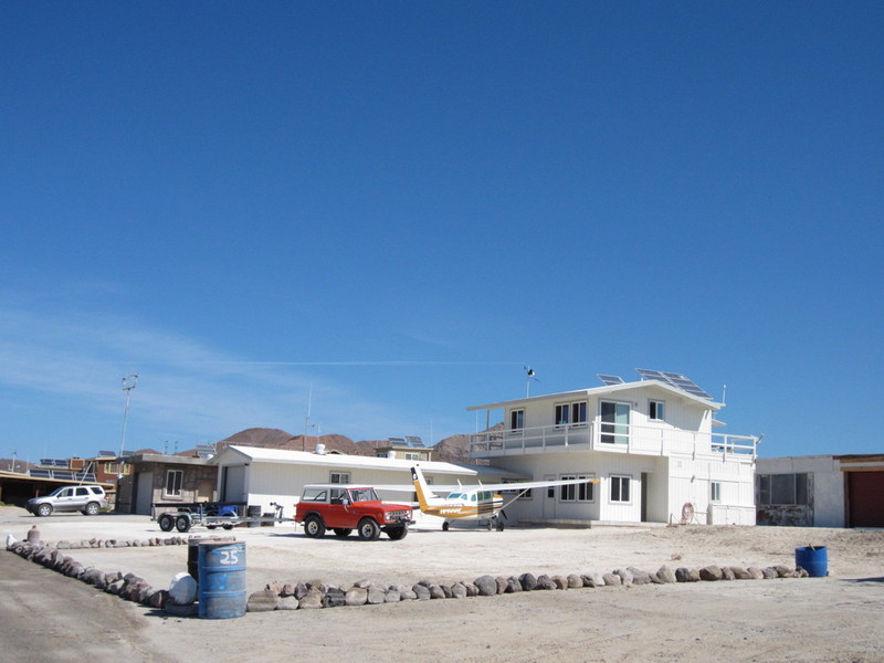Für Gonzaga Bay hat mir Dan ein nettes Hotel empfohlen. Es gibt hier genau dieses Hotel und eine Landebahn für Sportflugzeuge der Ferienhauseigentümer direkt neben der Straße. Auf dem Weg her gab es irgendwo ein Restaurant, sogar einen Autoservice und andere Hinweisschilder auf nette Familienunterkünfte. Hier soll das Paradies sein, frage ich mich. Ja und nein. Kein Grün und nicht viel Luxus, aber dafür ein fantastischer Sandstrand, blaues Wasser, Wüste drum herum und mit der Natur auf Du und Du. Es dauert nicht lange und ich bin im Wasser und sehe vom Strand aus einen Walhai, Pelikane und Fregattvögel über meinem Kopf kreisen, einen Wüstenfuchs. Wunderbar bei Ebbe und Flut die Tierwelt im Wasser zu beobachten: fliegende Fische, Krebse und Muscheln. Und wie die Möwen die Muscheln in die Luft mitnehmen, fallen lassen und fressen. Außer uns gibt es hier nur noch eine sehr nette amerikanische Familie, mit der wir uns den Sandstrand der Bucht teilen. Die kleinen Ferienhäuser sind kaum belegt, da die Saison noch nicht begonnen hat. Am Abend essen wir frischen und natürlich selbst gefangenen Fisch. Das ist ein bisschen wie ich mir das Paradies vorstelle. Hier bleibe ich.