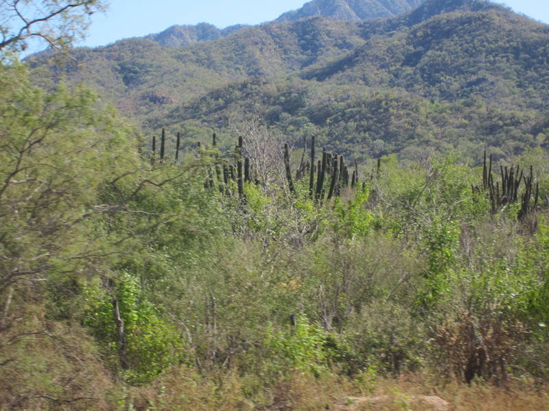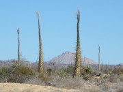Auf dem Weg zur Baja de Los Angeles wird es immer grüner. Hier wachsen die riesengroßen schlanke Cirios-Kakteen. Grün und stachelig.