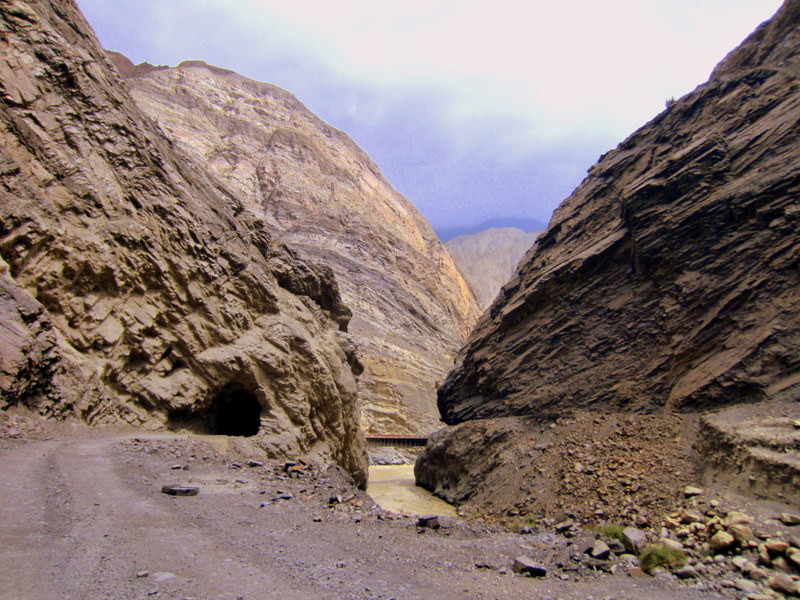 Komme immer wieder durch tiefdunkle Tunnel, in denen ich die Straße nicht mehr erkennen kann und die erst nach einer ganzen Weile das andere Ende frei geben. Einmal hätte es mich fast erwischt, kann die Maschine gerade noch abfangen. Mit kleinen Seen im Tunnel hatte ich nun wirklich nicht gerecht.