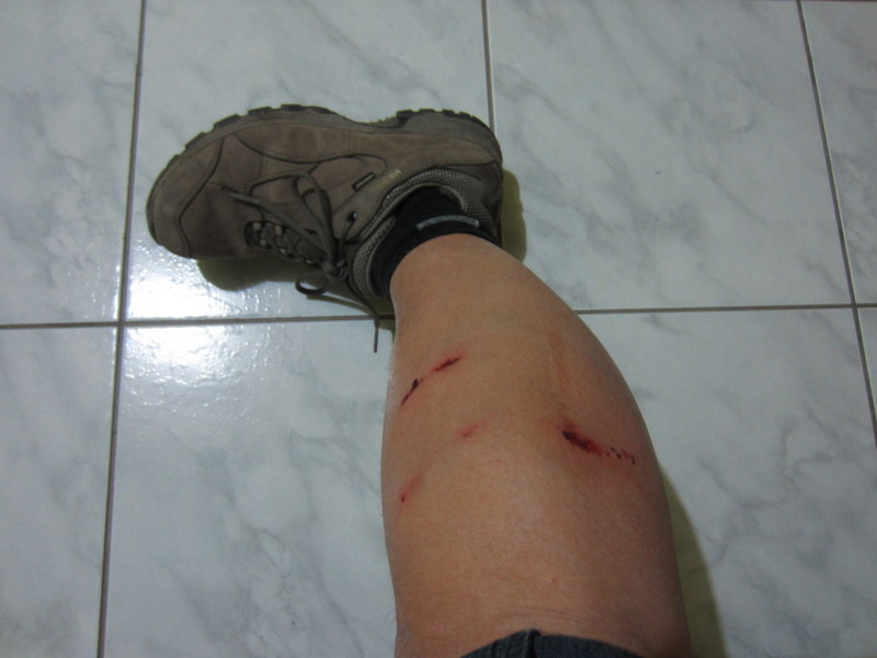 Die gute Nachricht: Es läuft wieder, aber die Elektronik spinnt immer noch. Während der Fahrt bleibt die ABS Lampe an und der Geschwindigkeitsanzeiger wandert schon mal auf Null, obwohl ich 50 km/h fahre. Und trotz des neu geflickten Kabels, geht die 10er Sicherung immer wieder kaputt, vorher flimmert die Uhr und die Kilometeranzeige auf, wenn das Motorrad aus ist. Meine Bordnetzsteckdose funktioniert nicht, die ich zum Aufpumpen der Reifen brauchen könnte. Und dann beißt mich während der Probefahrt ein Hund ins Wadenbein. Gut, dass ich eine Schutz- und Tollwutimpfung gemacht habe. Morgen werde ich meine Sachen zusammen packen und am Samstag weiterfahren.
