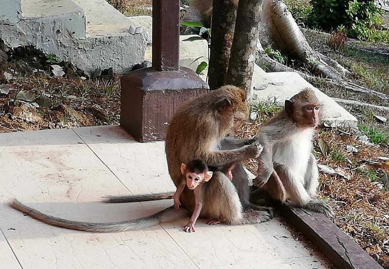 Ungefähr so geht es auch Anon. Thaichinese, der hier zur Arbeit angeheuert hat und den Strand sauber hält, die Steine des Vorplatzes entfernt, die Affen vertreibt, sobald die Touristen sie fotografiert haben, auf dem Tauchboot mithilft und in drei Monaten eine Strandbar am White Sand Beach eröffnen will, um Geld für eine Reise nach Indien zu sparen oder einen eigenen Zoo zu eröffnen. Vielleicht muss er vorher auch zurück in seinen Wald, wo er her kommt und den er manchmal vermisst. Wer weiß?! Da werde auch ich schon weit weg sein und an die regelmäßige Arbeit der Menschen hier zurück denken: Dem Rollervermieter und seiner Familie, die jeden Tag vor ihrem Haus auf Kundschaft warten. Der mir den Roller nur gegen den Personalausweis gab, weil ich ihn gleich für fünf Tage gemietet habe. Eine Kokosnuss schälte und aufmachte for free. Jetzt weiß ich zumindest wie es geht, auch wenn mir das Messer dazu fehlt. Den beiden thailändischen Mädchen, die jeden Tag die Zimmer der Abgereisten säubern und für die restlichen keine Zeit mehr finden. Den wirklich sehr aktiven Hotelmanager, der mir bei der legalen Wiedereinreise nach Thailand geholfen hat. Die Frauen an der Rezeption, die sich über mein Wiederkommen aus Kambodscha und den langen Aufenthalt hier freuten. Wir kennen uns jetzt vom Sehen. Ob sie oder ich hier nächstes Jahr wieder sein werden?